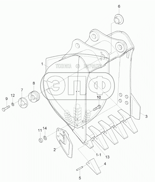 Каталог запасных частей к технике: Hyundai R170W-7. BUCKET (0.64M3 SAE HEAPED)