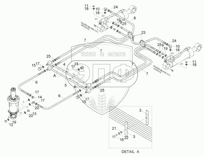 Каталог запасных частей к технике: Hyundai R170W-7. LOWER HYD PIPING (REAR BLADE)