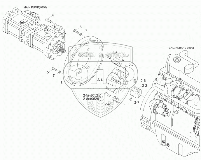 Каталог запасных частей к технике: Hyundai R170W-7. PUMP MOUNTING