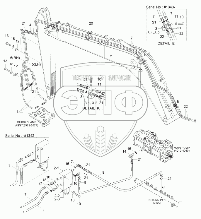 Каталог запасных частей к технике: Hyundai R170W-7. QUICK CLAMP HYD PIPING (#0092-)