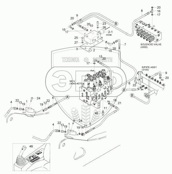 Каталог запасных частей к технике: Hyundai R170W-7. SINGLE ACTING MAIN PIPING KIT