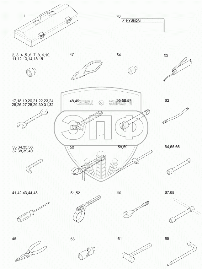 Каталог запасных частей к технике: Hyundai R170W-7. TOOLS