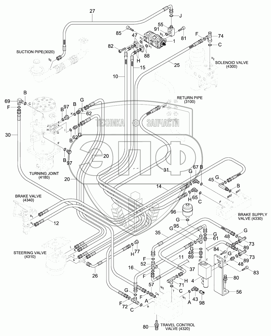 Каталог запасных частей к технике: Hyundai R170W-9. POWER TRAIN HYD PIPING 1