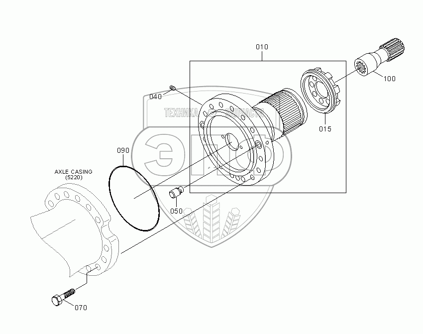 Каталог запасных частей к технике: Hyundai R170W-9. REAR AXLE HUB CARRIER (-#0192)