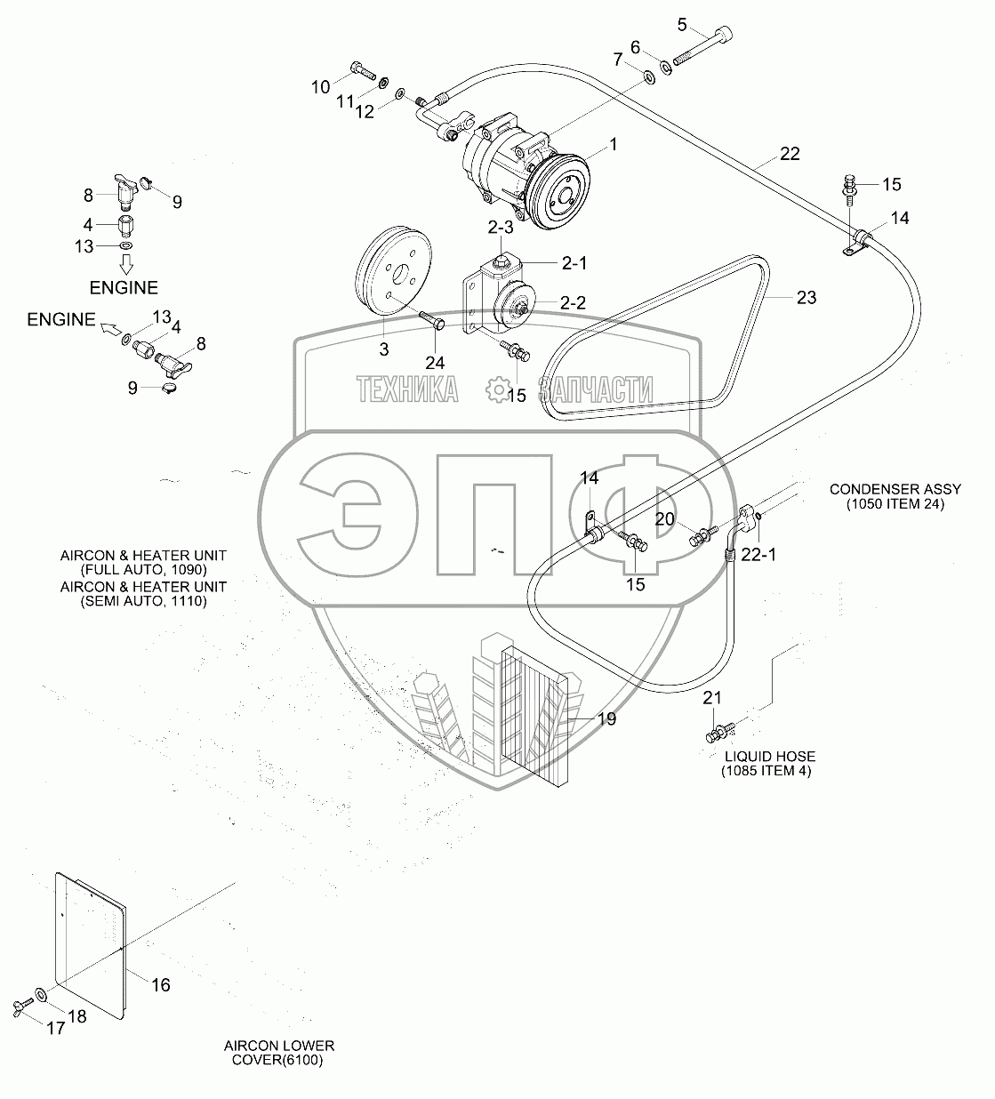 Каталог запасных частей к технике: Hyundai R170W-9S. AIRCON & HEATER GROUP