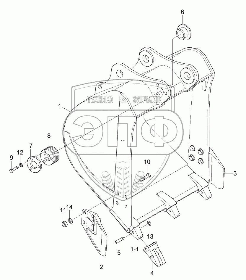Каталог запасных частей к технике: Hyundai R170W-9S. BUCKET (3 TEETH)