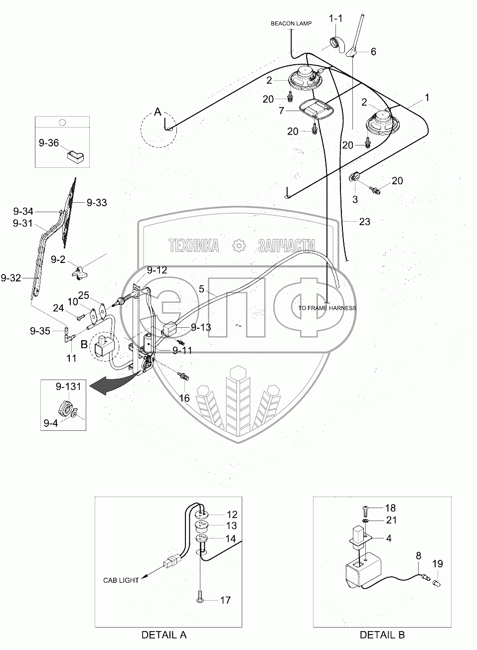 Каталог запасных частей к технике: Hyundai R170W-9S. CAB ELECTRIC 1