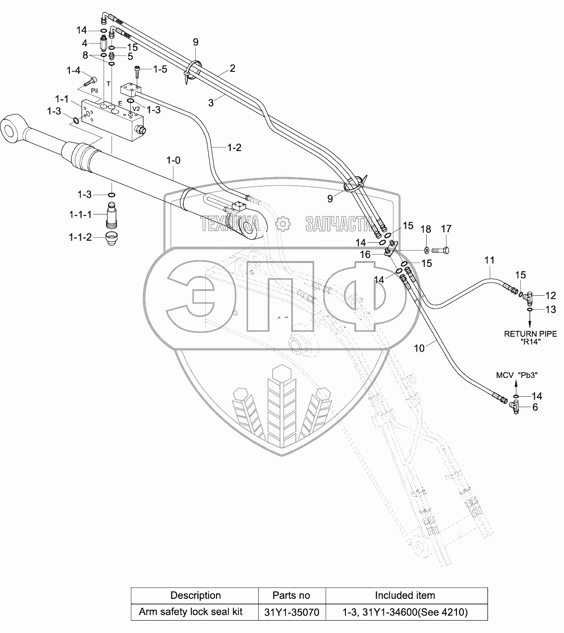 Каталог запасных частей к технике: Hyundai R180LC-9. ARM SAFETY LOCK SYSTEM
