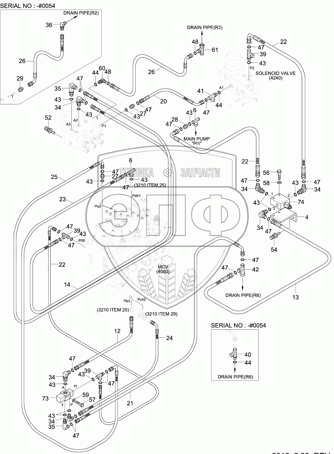 Каталог запасных частей к технике: Hyundai R180LC-9. DOUBLE ACTING MAIN PIPING KIT 2