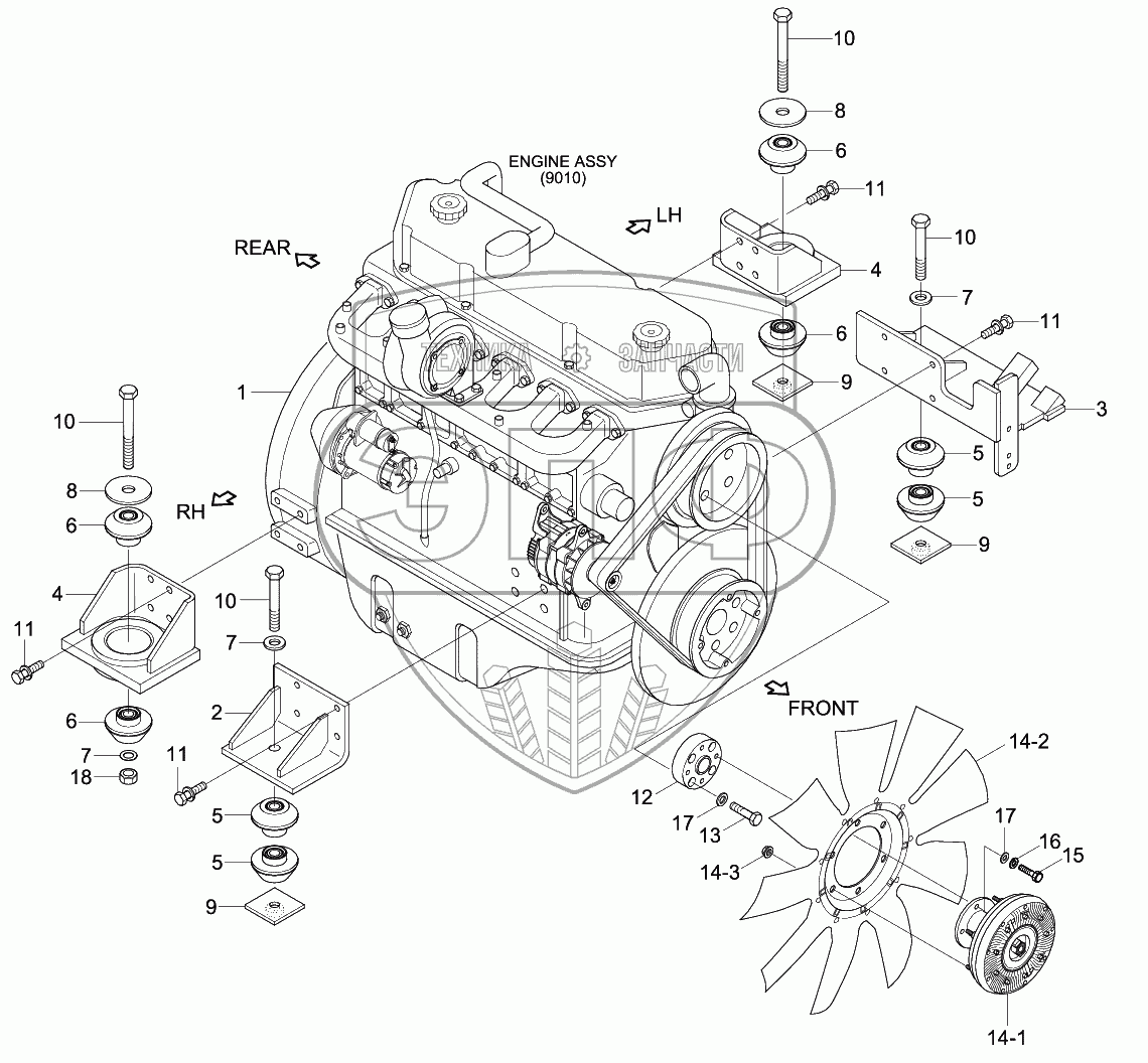 Каталог запасных частей к технике: Hyundai R180LC-9. ENGINE MOUNTING