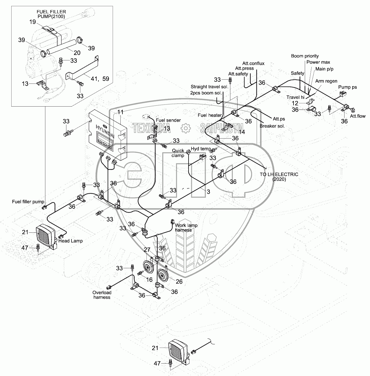 Каталог запасных частей к технике: Hyundai R180LC-9. RH ELECTRIC