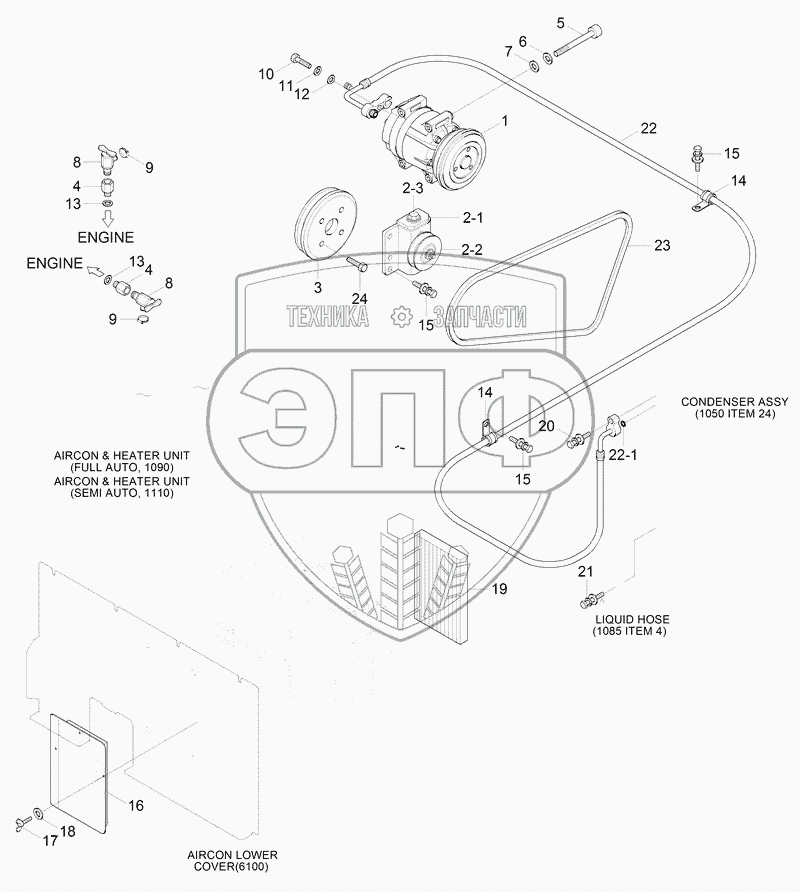 Каталог запасных частей к технике: Hyundai R180LC-9S. AIRCON & HEATER GROUP