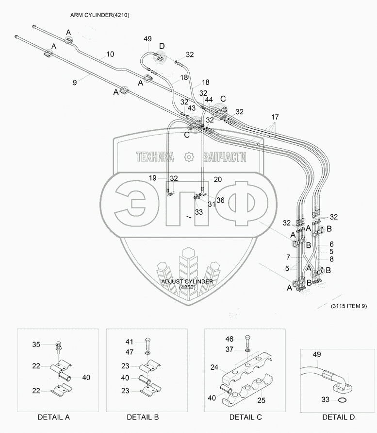 Каталог запасных частей к технике: Hyundai R180LC-9S. BOOM HYD PIPING (ADJUST BOOM)