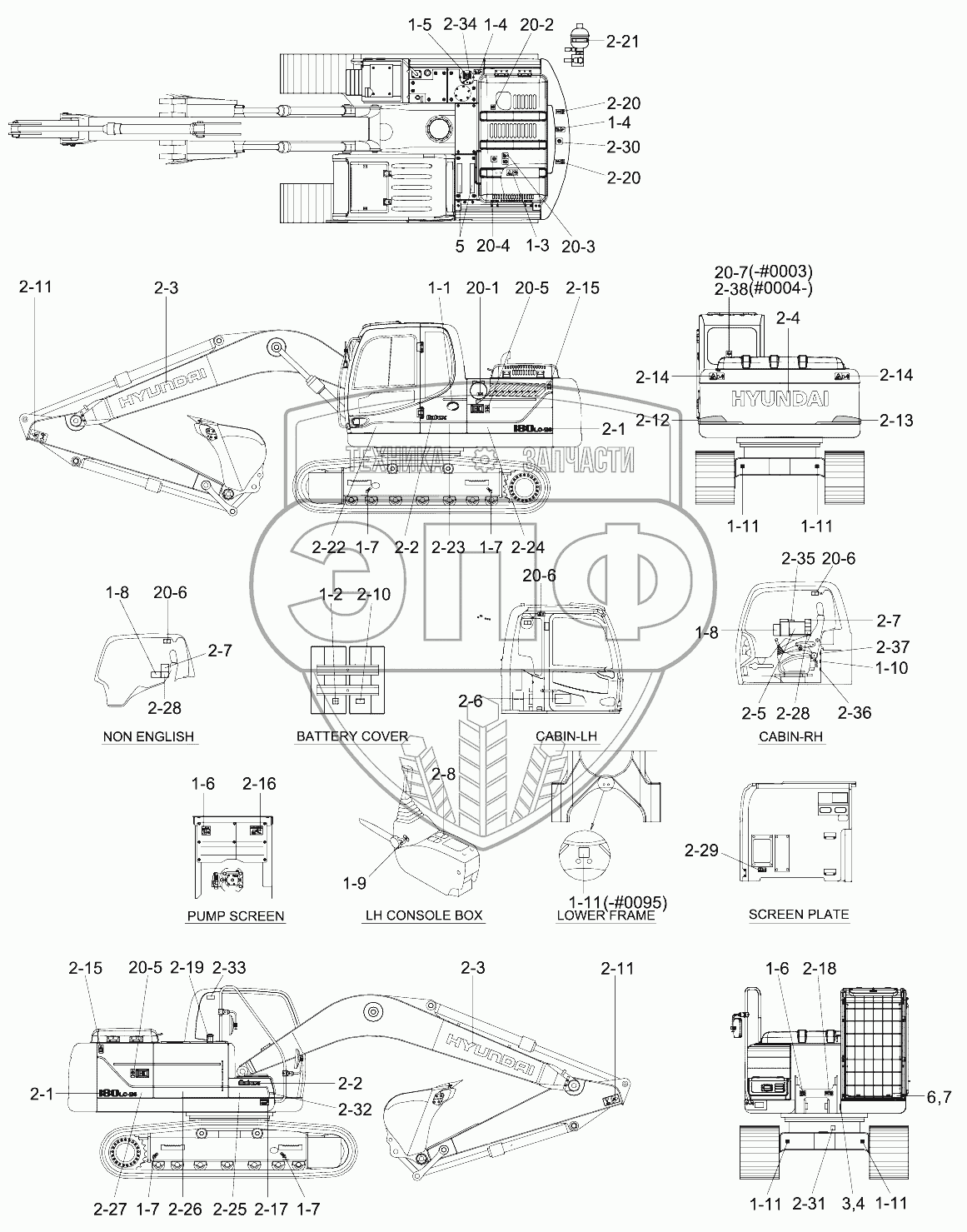 Каталог запасных частей к технике: Hyundai R180LC-9S. DECALS