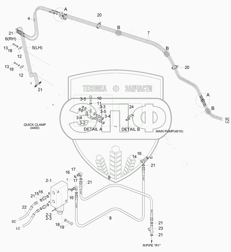 Каталог запасных частей к технике: Hyundai R180LC-9S. QUICK CLAMP HYD PIPING