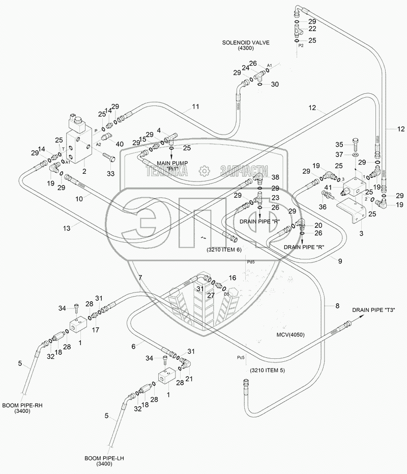 Каталог запасных частей к технике: Hyundai R180LC-9S. SINGLE ACTING MAIN PIPING KIT