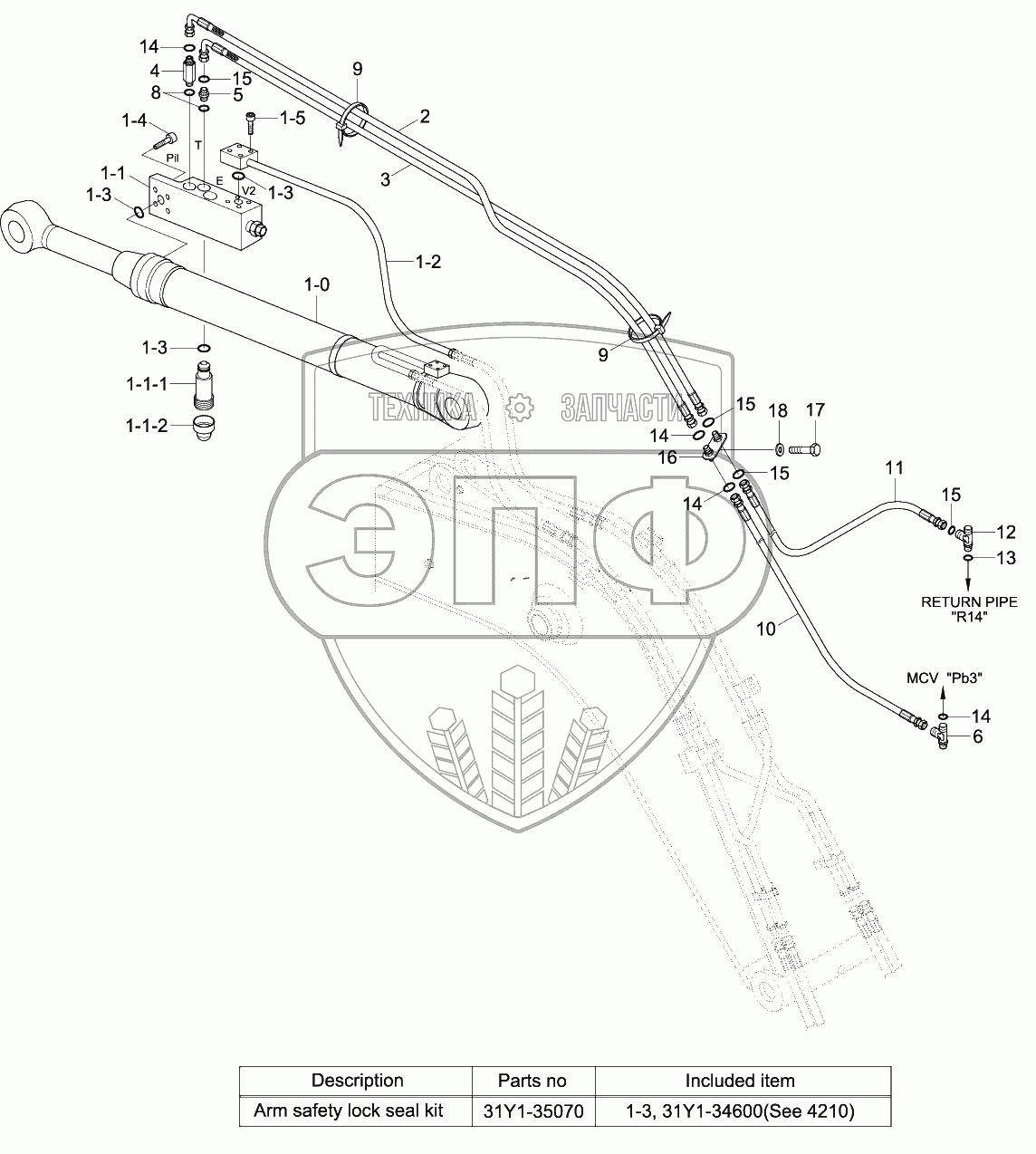 Каталог запасных частей к технике: Hyundai R180W-9S. ARM SAFETY LOCK SYSTEM