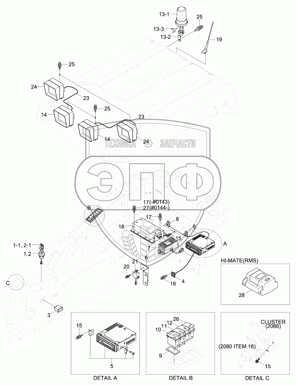 Каталог запасных частей к технике: Hyundai R180W-9S. CAB ELECTRIC 2