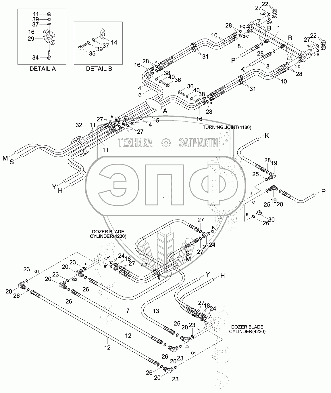 Каталог запасных частей к технике: Hyundai R180W-9S. LOWER HYD PIPING (FRONT BLADE)