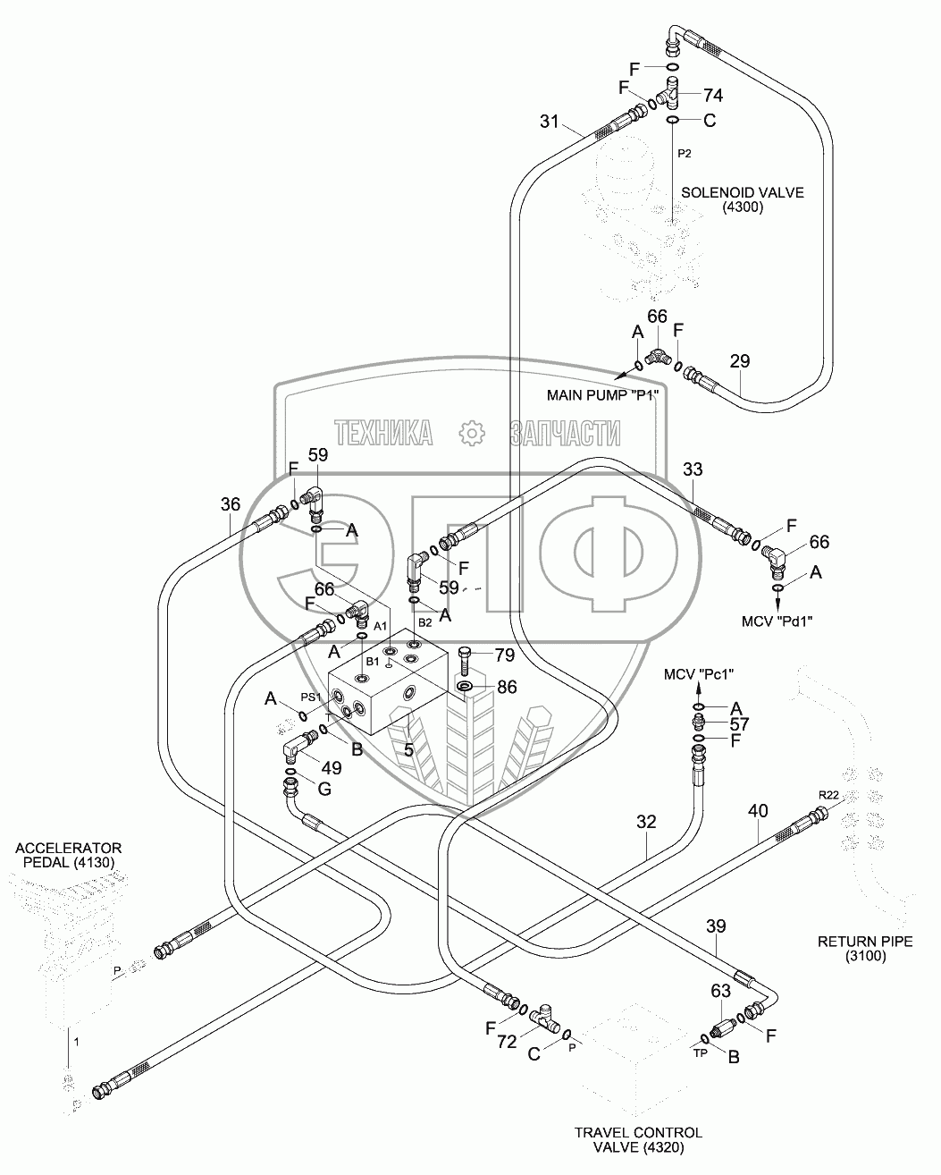 Каталог запасных частей к технике: Hyundai R180W-9S. POWER TRAIN HYD PIPING 4