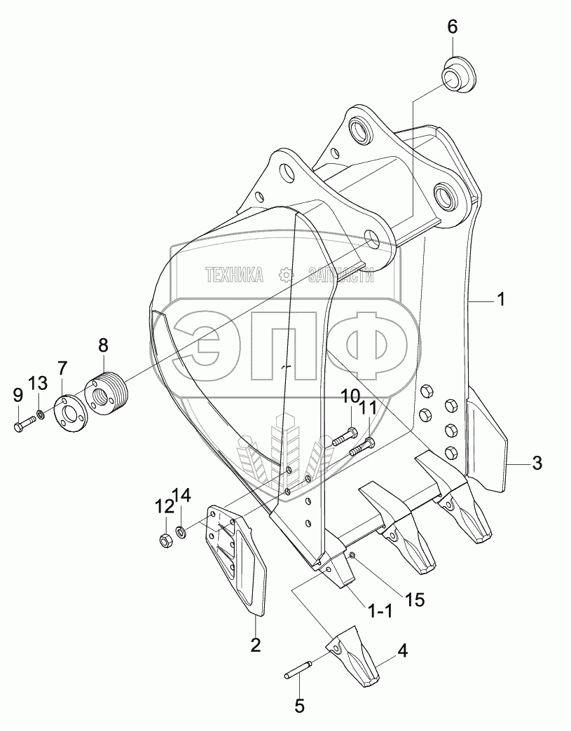 Каталог запасных частей к технике: Hyundai R210LC-9. BUCKET (3 TEETH)