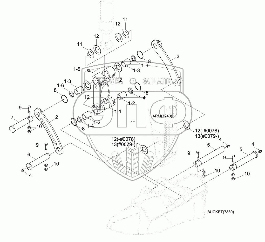 Каталог запасных частей к технике: Hyundai R210LC-9. BUCKET CONTROL GROUP (LONG REACH)