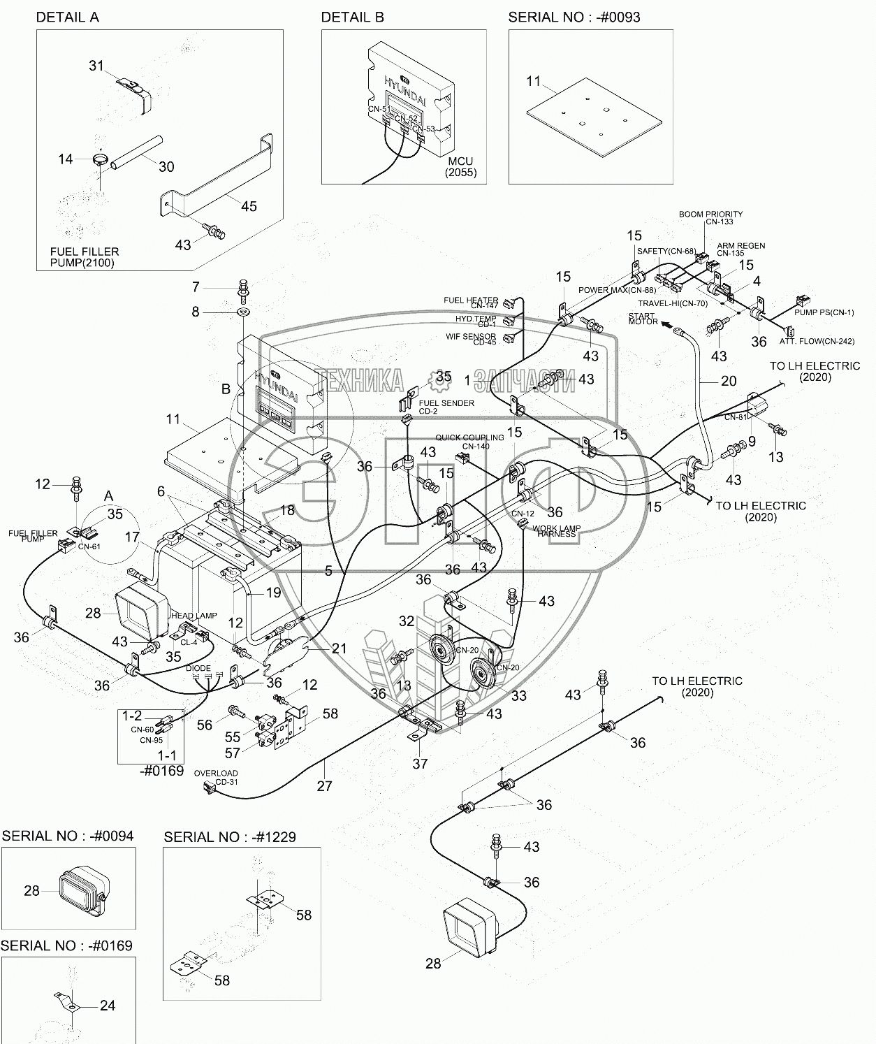 Каталог запасных частей к технике: Hyundai R210LC-9. RH ELECTRIC (#0062-)