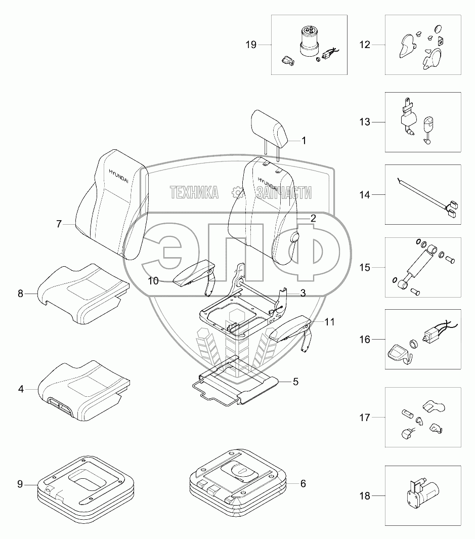 Каталог запасных частей к технике: Hyundai R210LC-9. SEAT (SUSPENSION, 2"AIR RIDE)