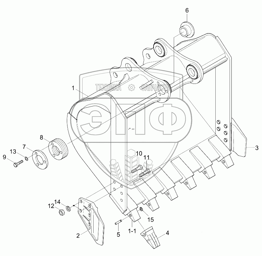 Каталог запасных частей к технике: Hyundai R210NLC-9. BUCKET (6 TEETH)