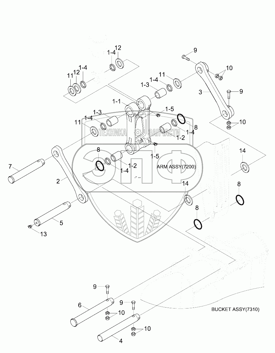 Каталог запасных частей к технике: Hyundai R210NLC-9. BUCKET CONTROL GROUP