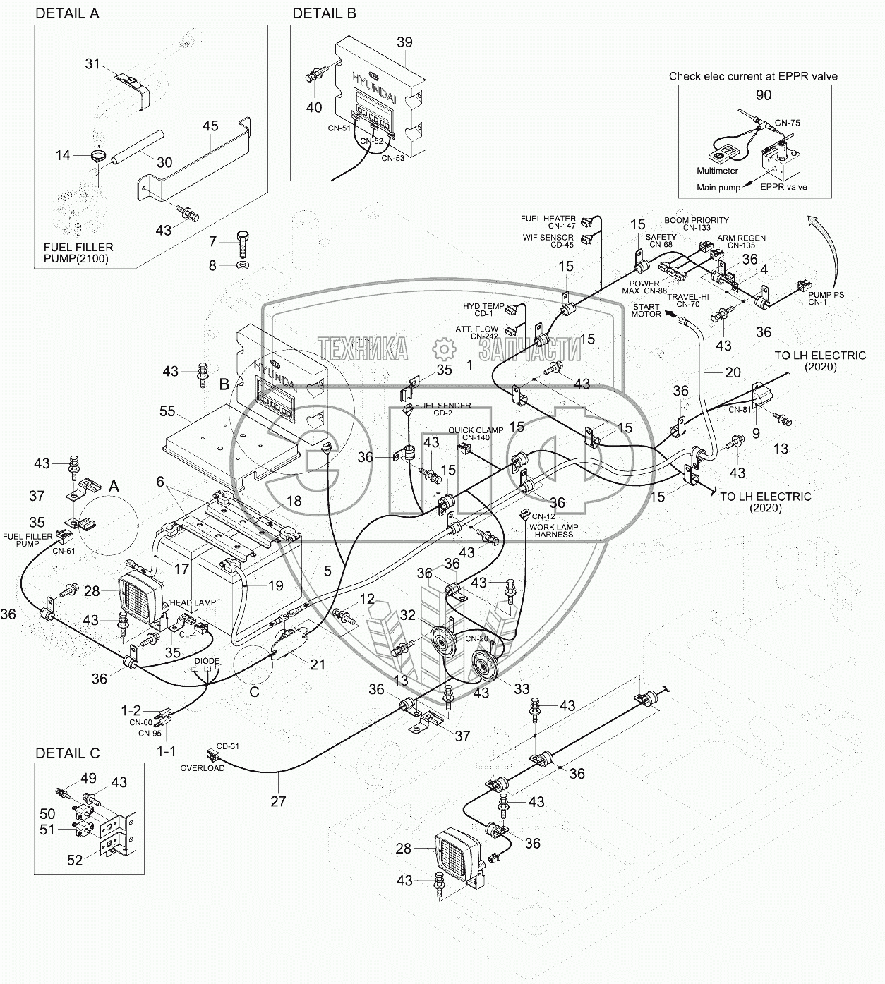 Каталог запасных частей к технике: Hyundai R210NLC-9. RH ELECTRIC