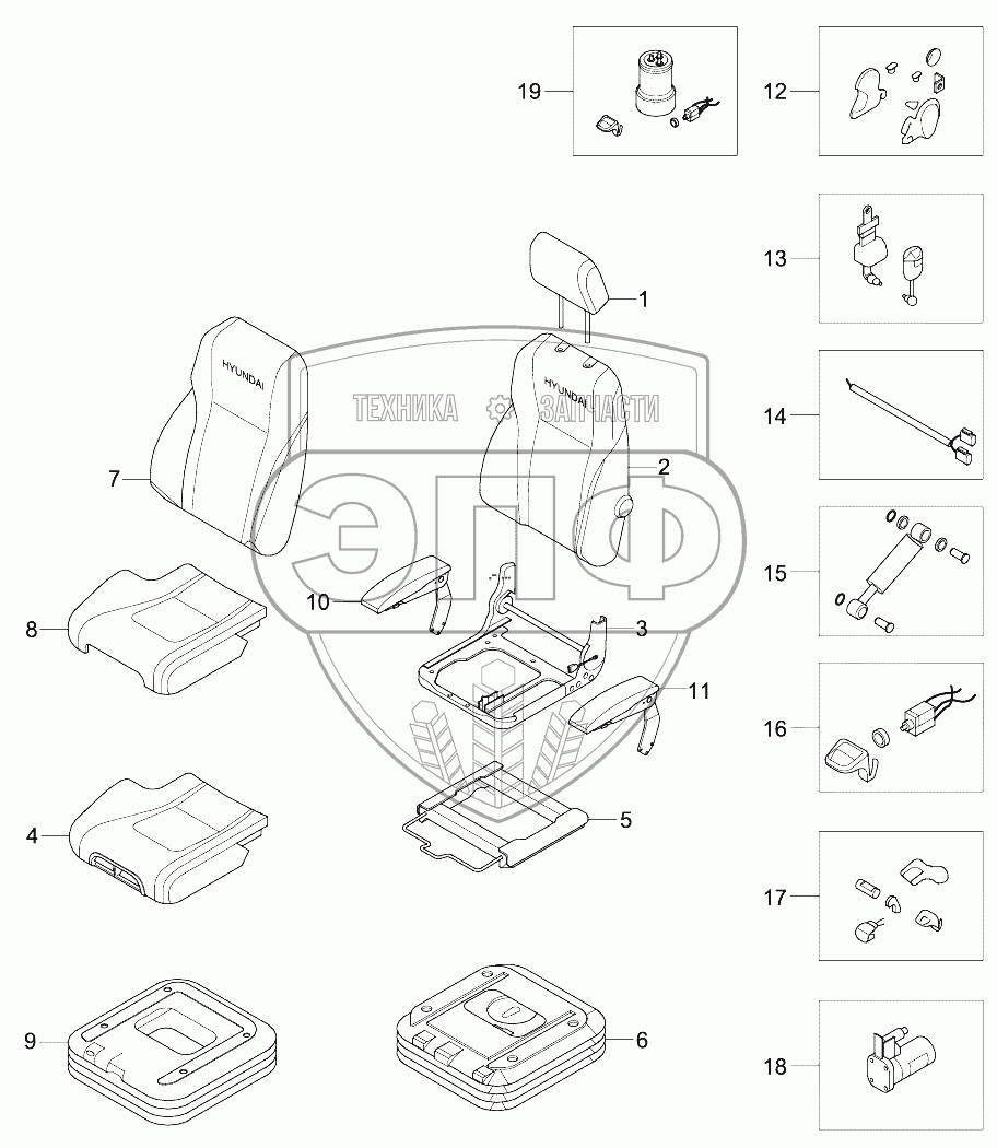Каталог запасных частей к технике: Hyundai R210NLC-9. SEAT (SUSPENSION, 2"AIR RIDE)