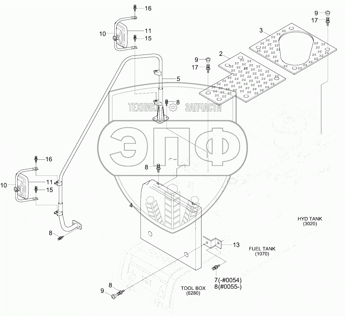 Каталог запасных частей к технике: Hyundai R210NLC-9. TOOL BOX MOUNTING