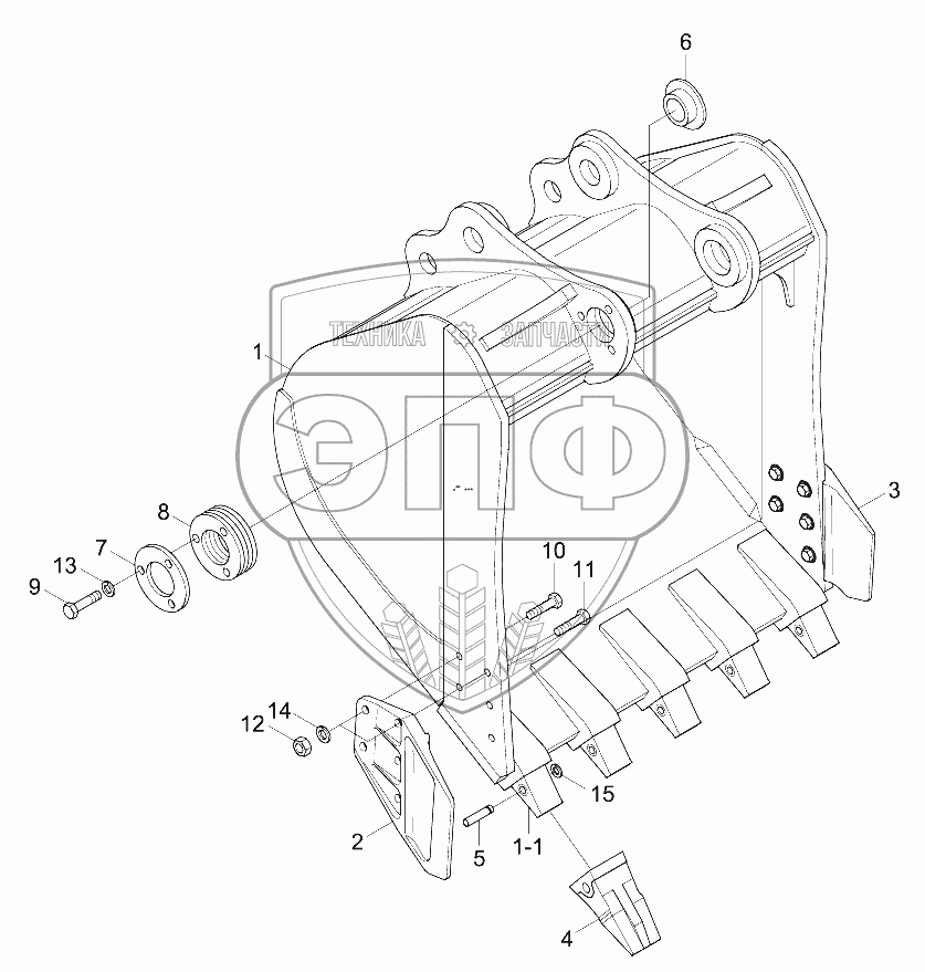 Каталог запасных частей к технике: Hyundai R210W-9. BUCKET (5 TEETH)