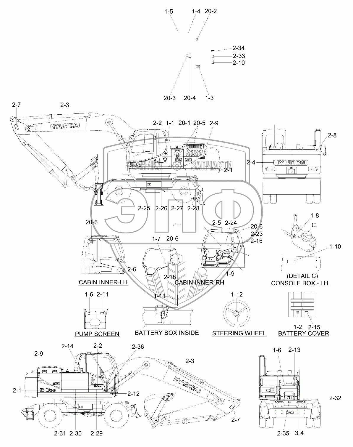 Каталог запасных частей к технике: Hyundai R210W-9. DECALS