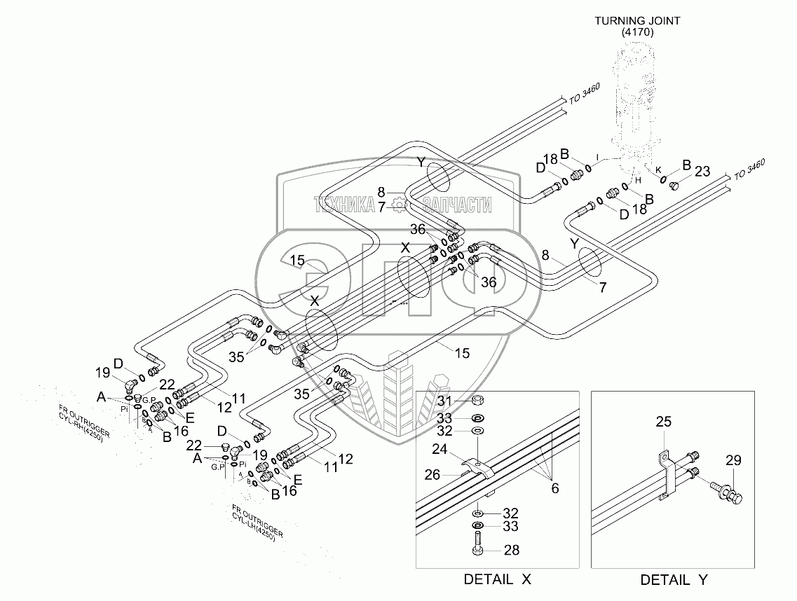 Каталог запасных частей к технике: Hyundai R210W-9. FRONT OUTRIGGER HYD PIPING (#0285-)