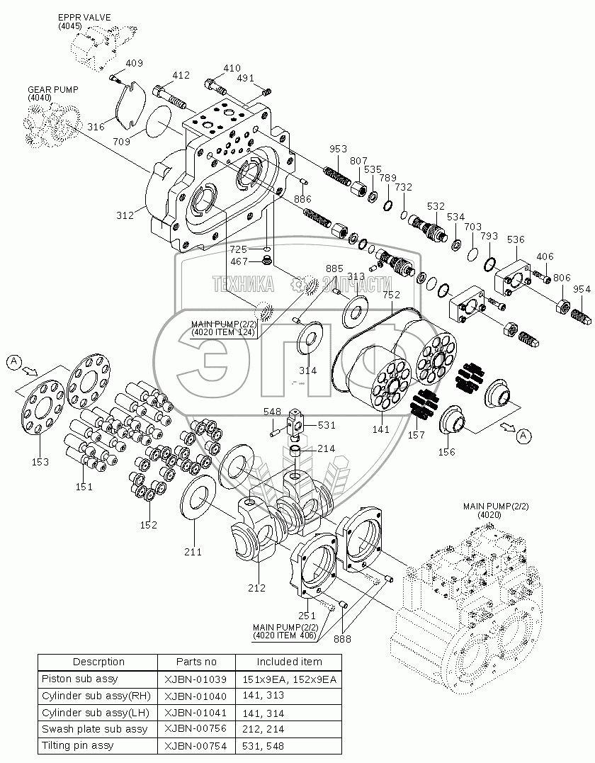 Каталог запасных частей к технике: Hyundai R210W-9. MAIN PUMP (1/2)