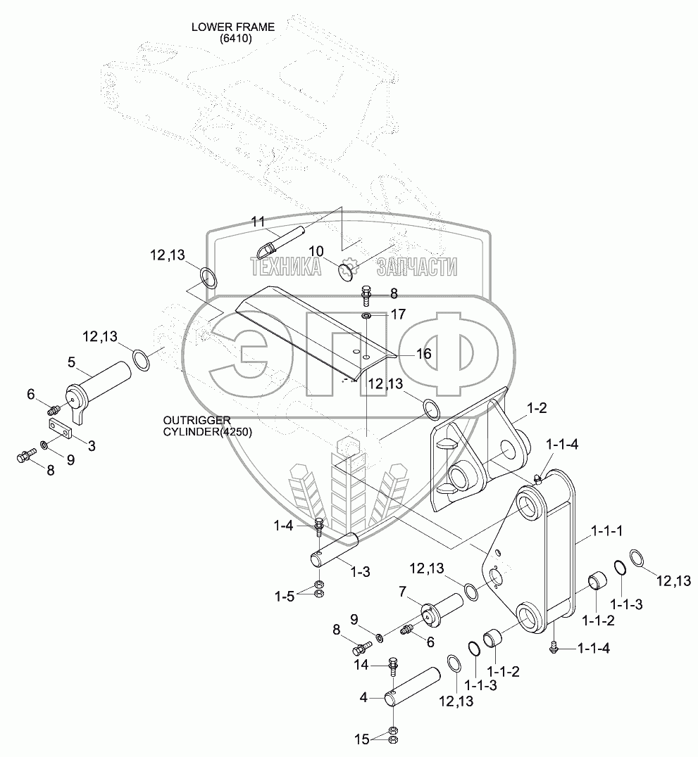 Каталог запасных частей к технике: Hyundai R210W-9. OUTRIGGER MOUNTING (FRONT)