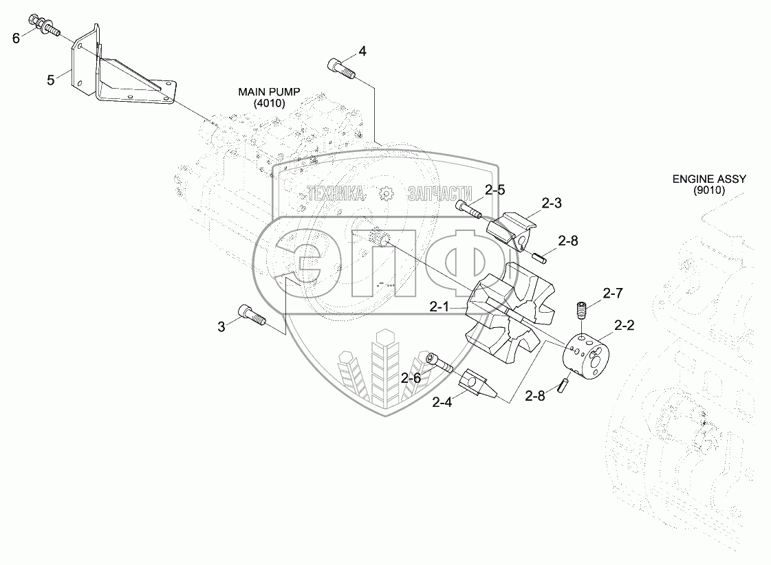 Каталог запасных частей к технике: Hyundai R210W-9. PUMP MOUNTING