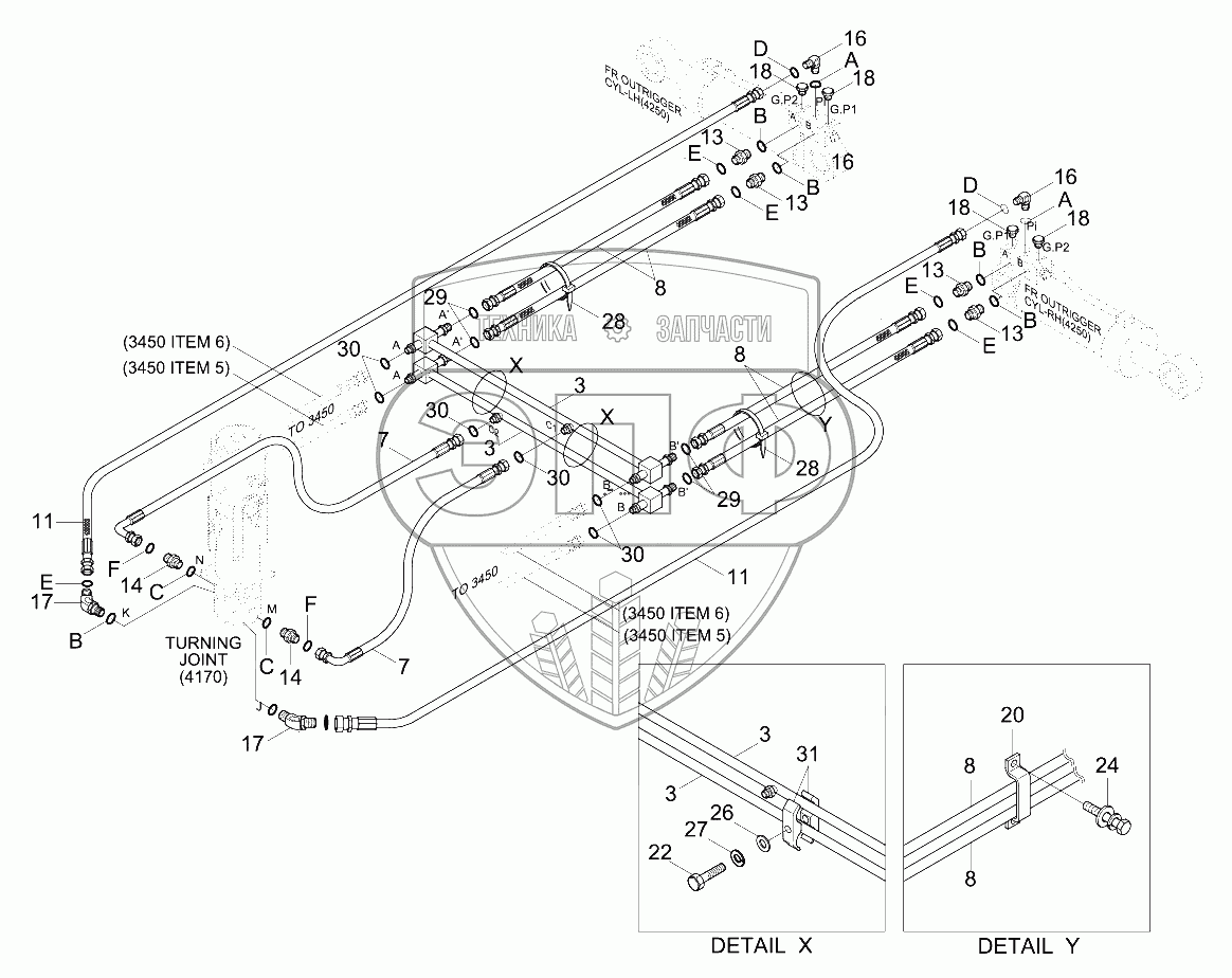 Каталог запасных частей к технике: Hyundai R210W-9. REAR OUTRIGGER HYD PIPING (-#0285)