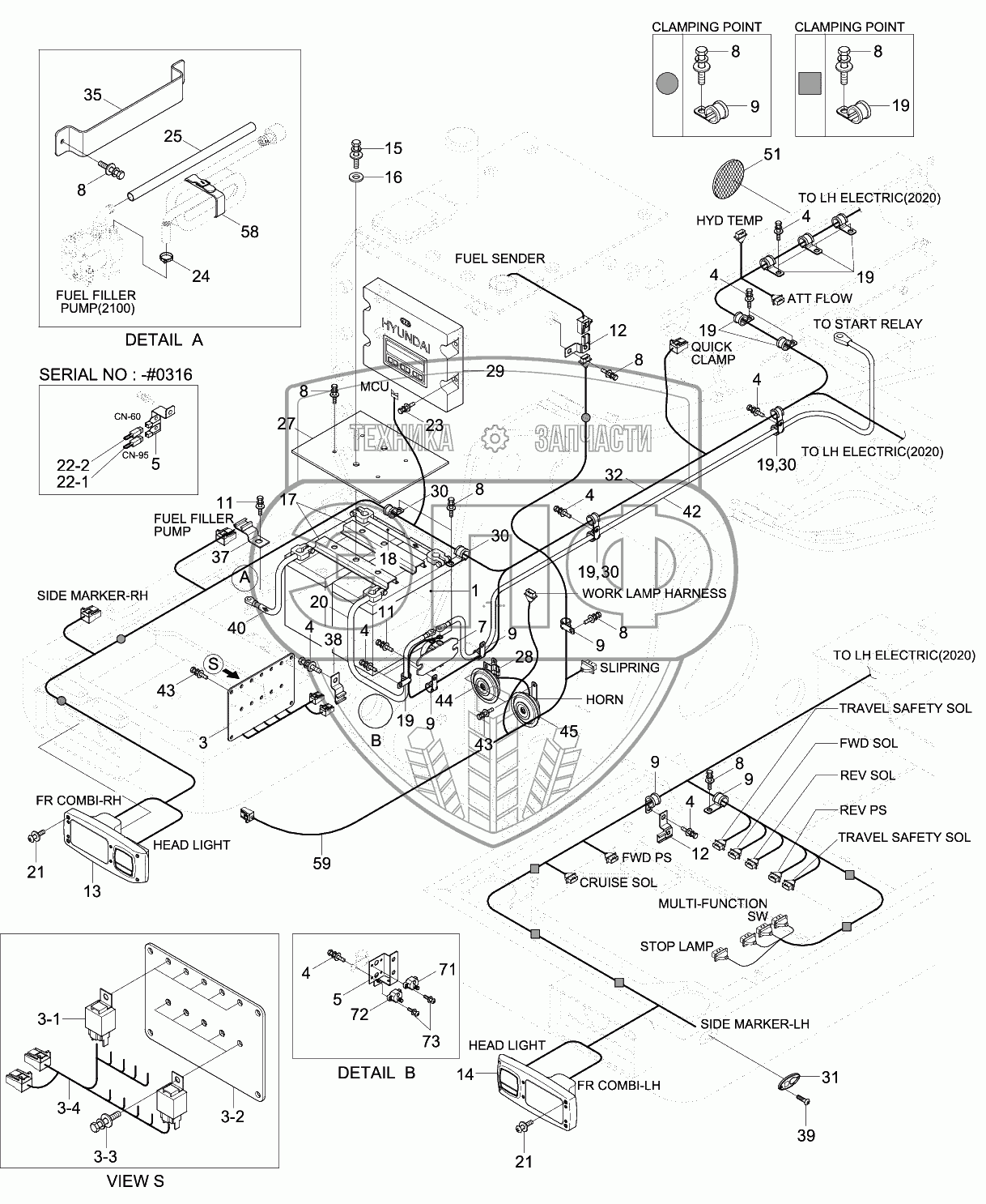 Каталог запасных частей к технике: Hyundai R210W-9. RH ELECTRIC