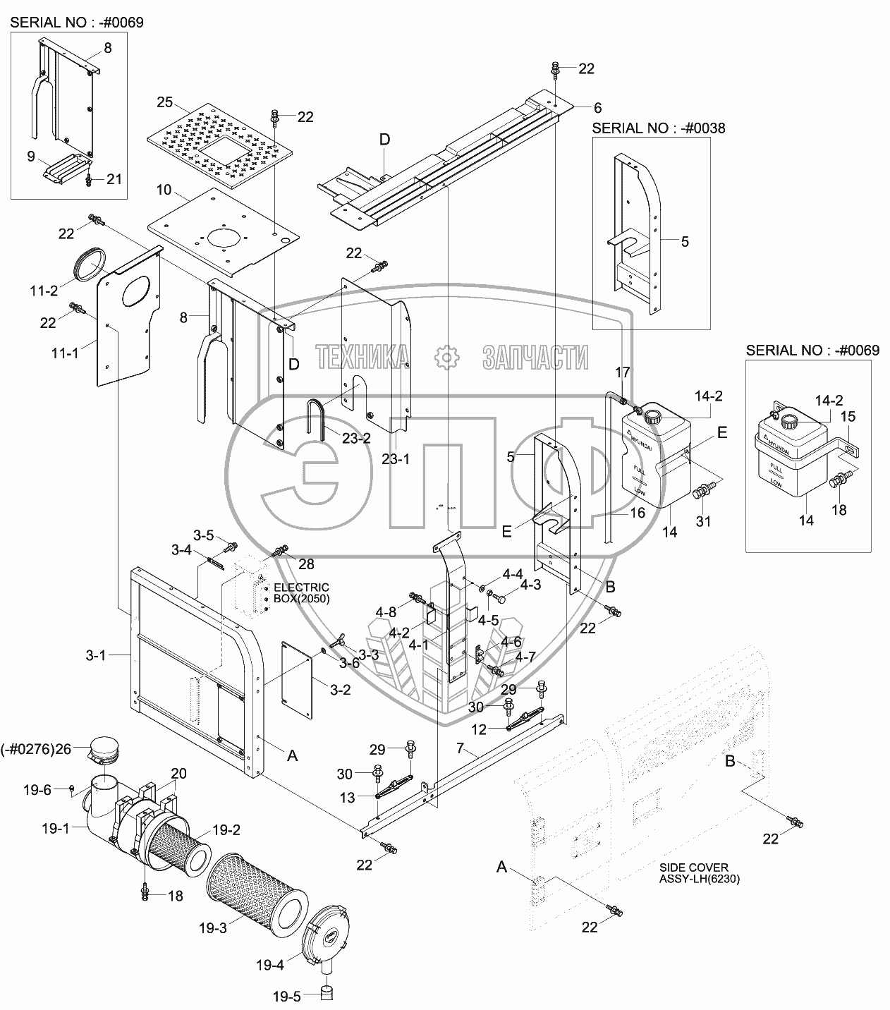Каталог запасных частей к технике: Hyundai R210W-9. SIDE COWL ASSY (LH)