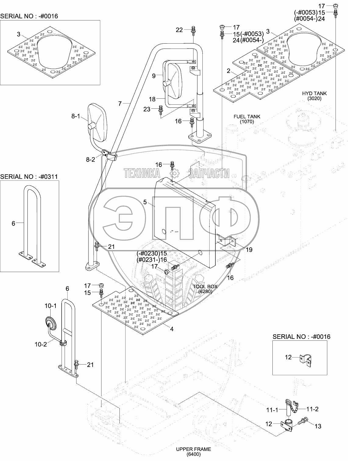 Каталог запасных частей к технике: Hyundai R210W-9. TOOL BOX MOUNTING