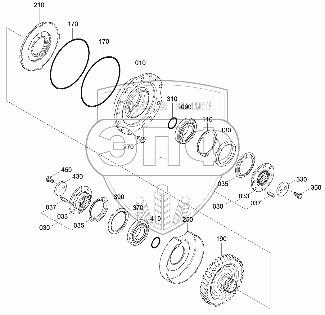 Каталог запасных частей к технике: Hyundai R210W-9. TRANSMISSION OUTPUT GROUP