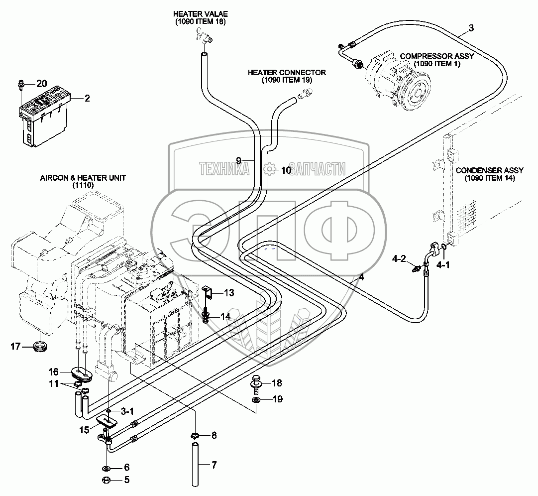 Каталог запасных частей к технике: Hyundai R330LC-9A. AIR CONDITIONER BOTTOM SUB