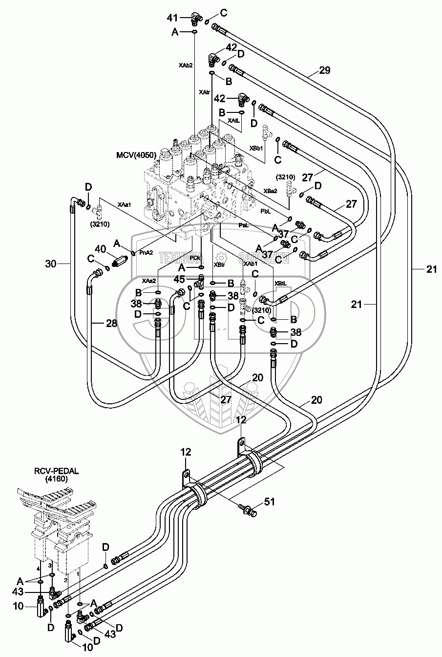 Каталог запасных частей к технике: Hyundai R330LC-9A. PILOT HYDRAULIC PIPING (CONTROL 3)