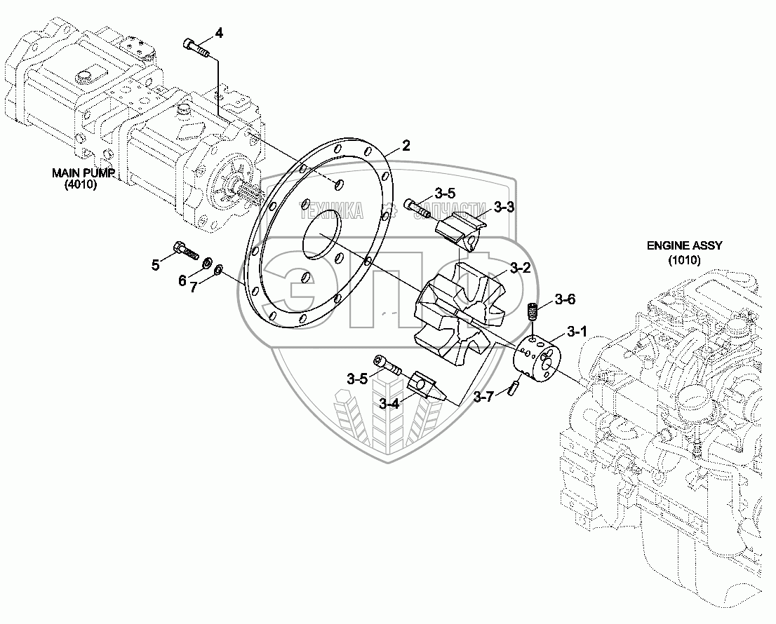 Каталог запасных частей к технике: Hyundai R330LC-9A. PUMP MOUNTING
