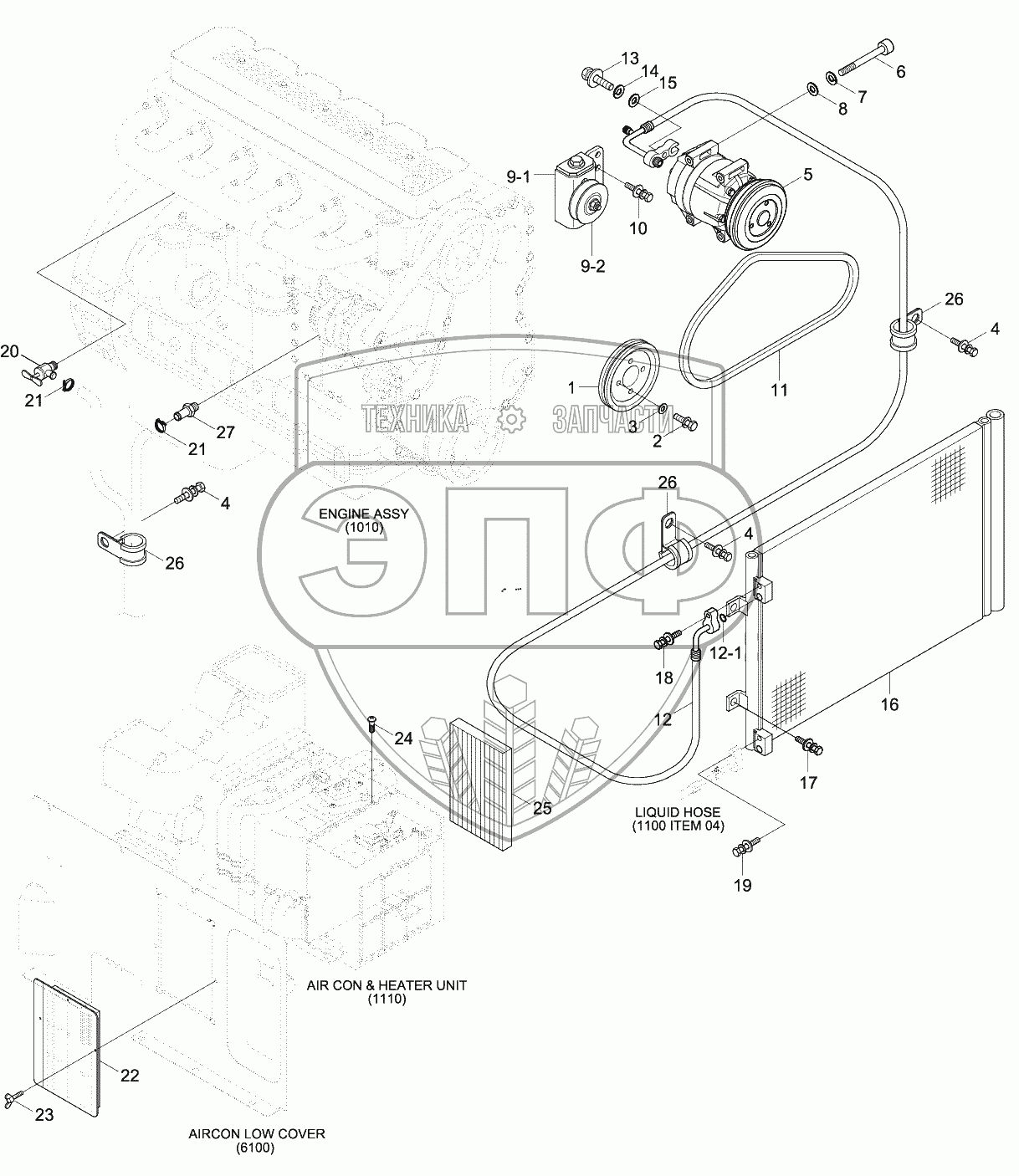 Каталог запасных частей к технике: Hyundai R330LC-9S. AIRCON & HEATER GROUP
