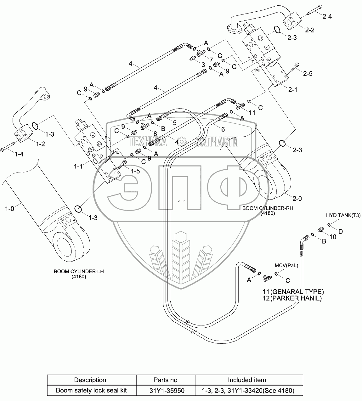 Каталог запасных частей к технике: Hyundai R330LC-9S. BOOM SAFTY ROCK SYSTEM