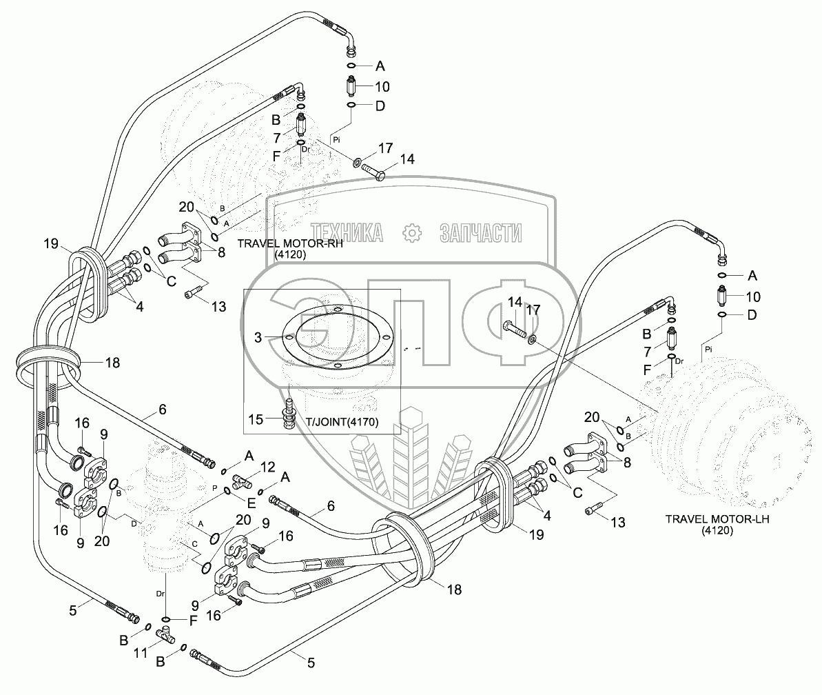 Каталог запасных частей к технике: Hyundai R330LC-9S. TRAVEL HYD PIPING (HIGH WALKER)